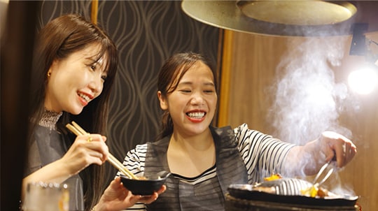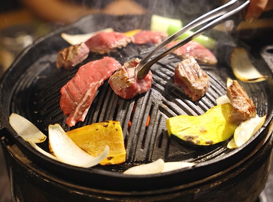 夕食は旭川のソウルフード、ジンギスカンの名店へ。「旭川成吉思汗 大黒屋」は整理券をとって順番待ちをする人が後を絶たない人気店です。フレッシュなラム肉を炭火で焼いて、オリジナルの醤油ダレで食べるスタイル。あらかじめタレに漬け込むのとはまた違って、新鮮な肉そのもののおいしさを存分に味わえます。肩ロース、ランプ、ヒレが盛り合わせになった「1番セット」がおすすめだそうです。