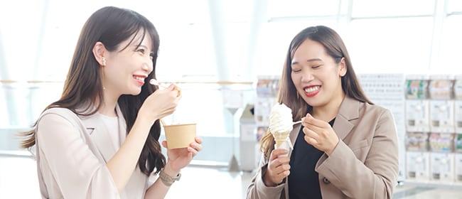 旭川空港ターミナル内の「MILK STAND esperio」は、オホーツク海に面した興部(おこっぺ)町産の「おこっぺ牛乳」を使ったヨーグルトやチーズなどの乳製品、発酵バターのクロワッサンが揃うスタンド。牧草主体でストレスなく育てられた乳牛から搾った「おこっぺ牛乳」の生乳100%のソフトクリームは、お店の一番人気だそうです。ひと口ごとにミルクの風味がしっかり感じられて濃厚なのに、さっぱりとした甘さで食べ飽きません。旅の終わりに味わえば、また旭川が恋しくなるかも?