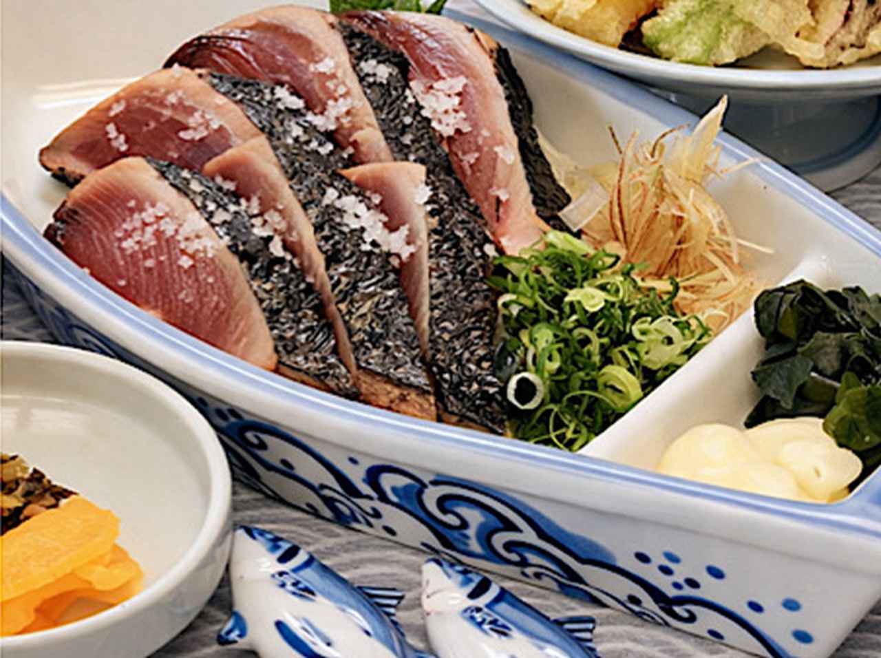 藁焼きの香ばしい匂いと、とろけるような初鰹のおいしさはまさにこの場所でしか出合えない贅沢です。この時期は、町全体が鰹一色に変わる特別な2週間となります!