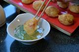 その次は、穴あきお玉を使って氷を取り除きます。細かな氷をしっかり取り除かないと、釣り糸が沈まないそうなので、丁寧に。