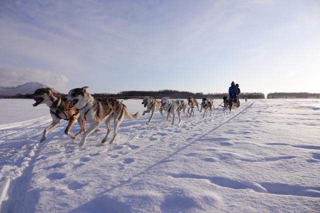 そりを引く犬種は、アラスカン・ハスキーが中心。雪原を走ることが大好きで、力強いスピードと安定感に驚く人も多いそう。