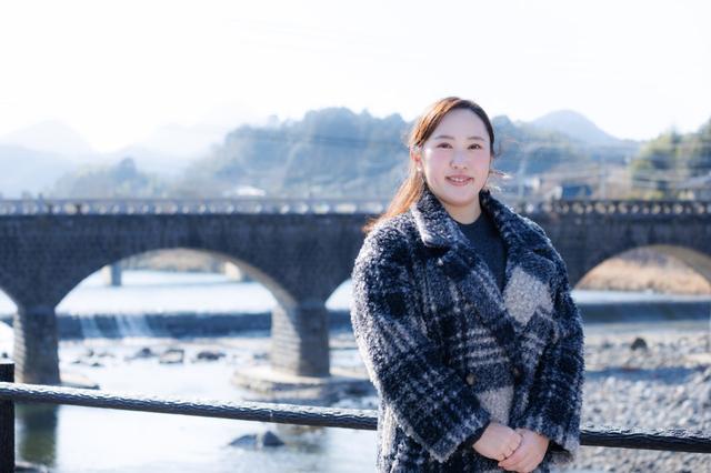 耶馬渓橋は日本全国に現存する石橋の長さランキングにおいて、最長とされる長さ約116mの石橋です。二つの地域を結ぶ生活道路として今も活用されており、車も通るなど100年前のものとは思えないほど立派です。旅の記念に、石橋の前で記念写真をパチリ。年月を重ねてきた石橋が、変わらない周囲の自然に溶け込んでいるようでした。