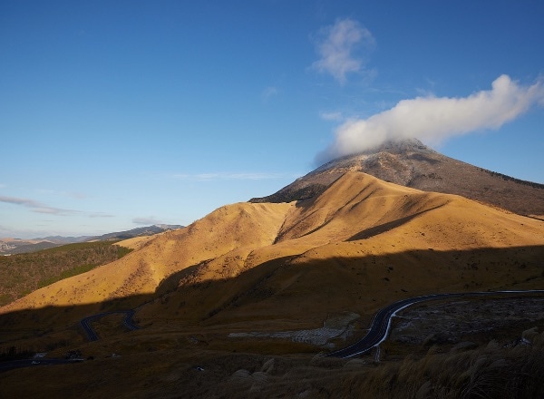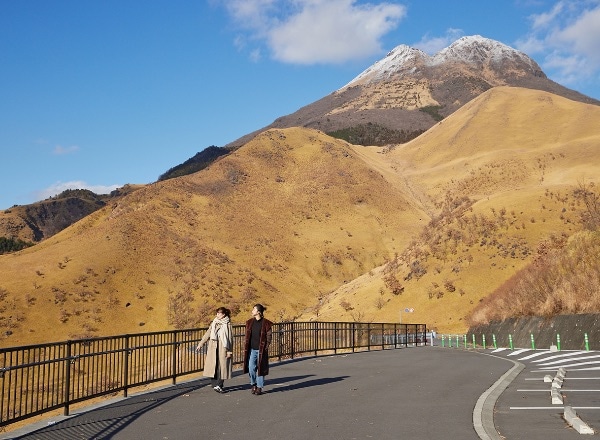 湯布院と熊本県の阿蘇という2大観光地をつなぐ山岳道路。由布岳の麓にある狭霧台から湯布院の街を一望できます。