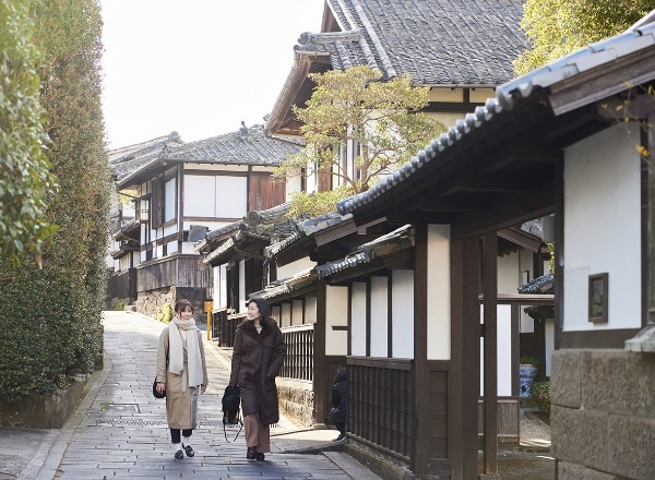 かつての城下町の面影を残す二王座歴史の道。漆喰の壁や瓦屋根の武家屋敷、モダンな洋館などレトロな街並みを見ることができます。