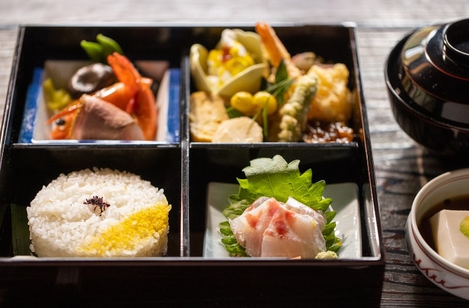 当日仕入れた食材を使い、技を凝らした箱弁当にお吸い物などが付いた豪華なランチ限定のメニューです。