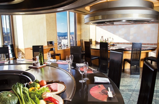 シェフ厳選の食材を目の前で焼き上げる「鉄板焼 山茶花」、