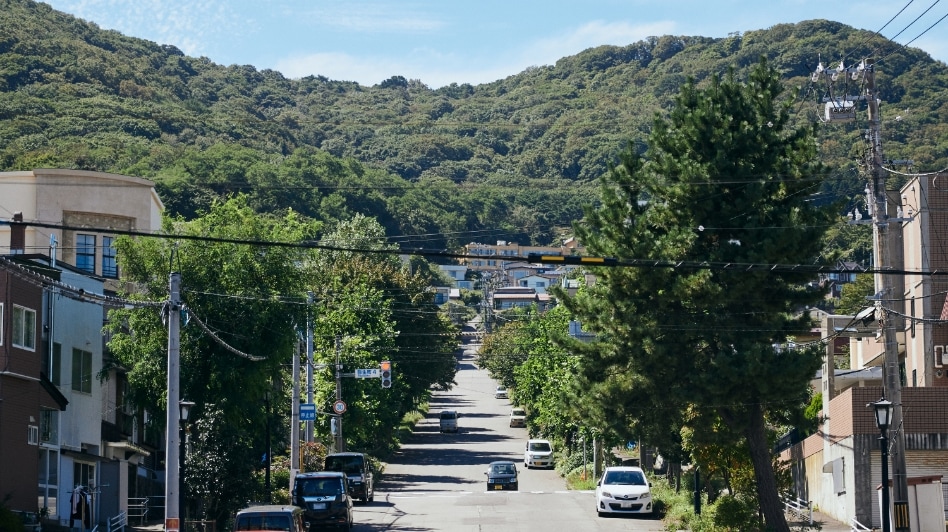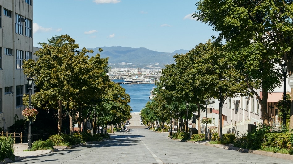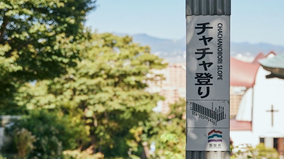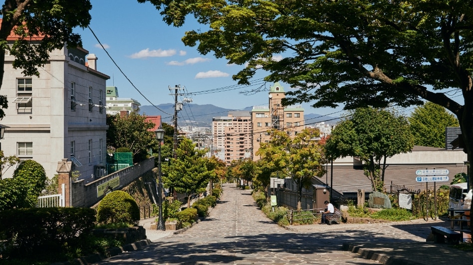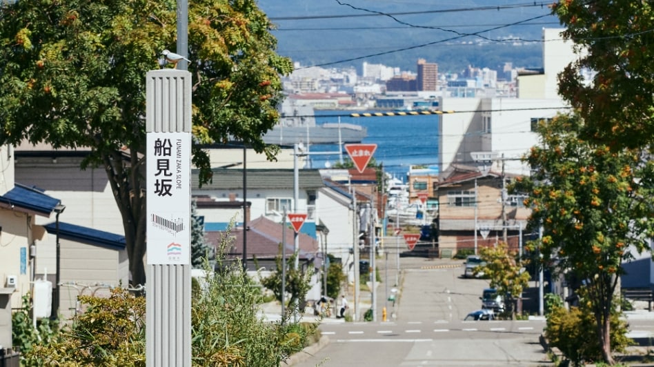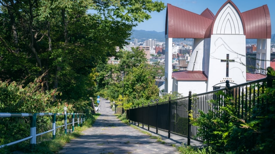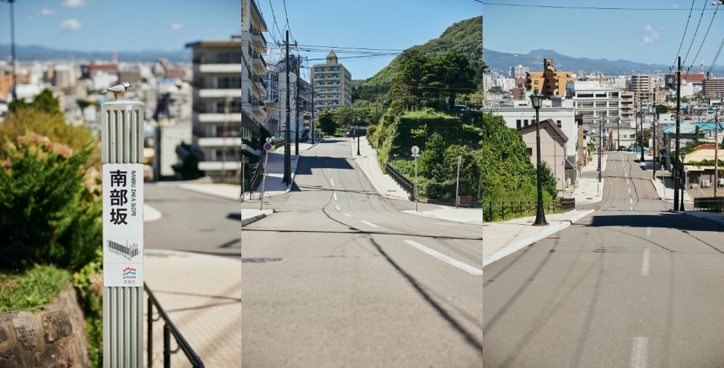 この坂は、下から見る景色が圧倒的におすすめ。途中、ロープウェイを望みながら歩くことができるのが最大の魅力です。他の坂に比べて細く短く、レトロな小道といった可愛らしさを備えています。アイヌ語で「おじいさんのように腰を屈めて歩くくらいの傾斜」という意味から名付けられているそう。