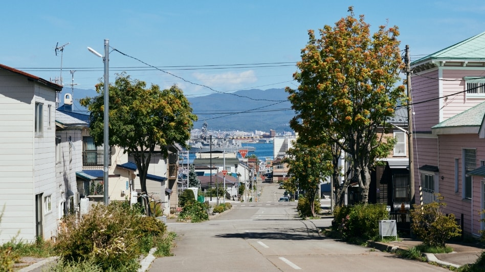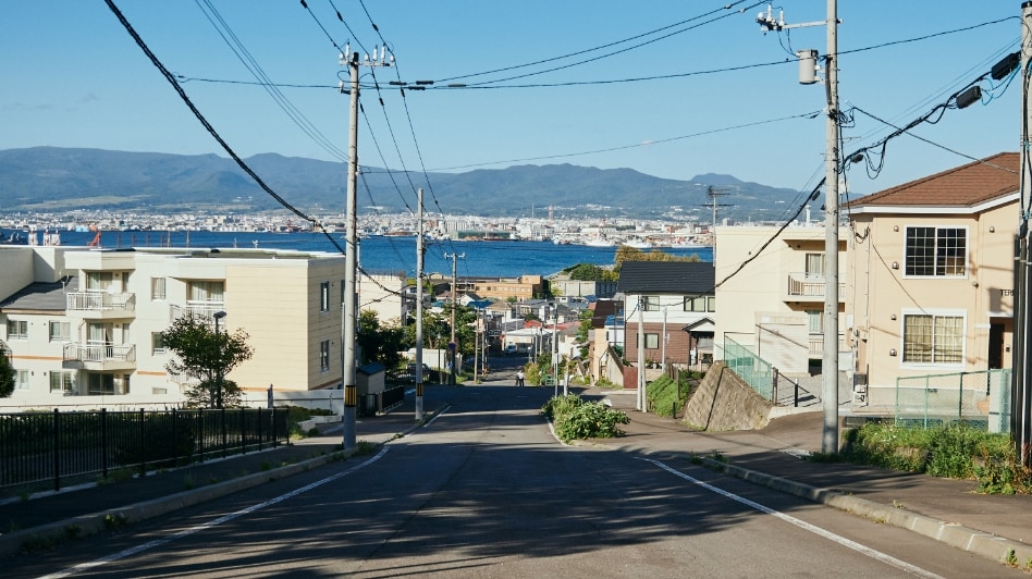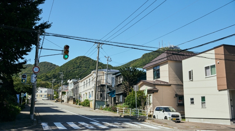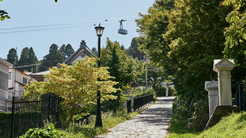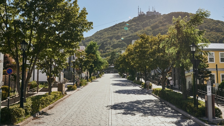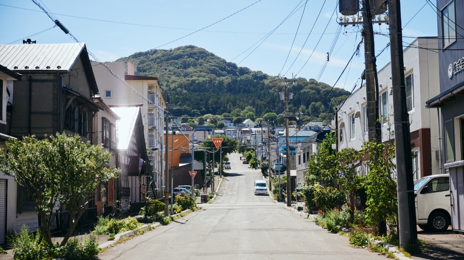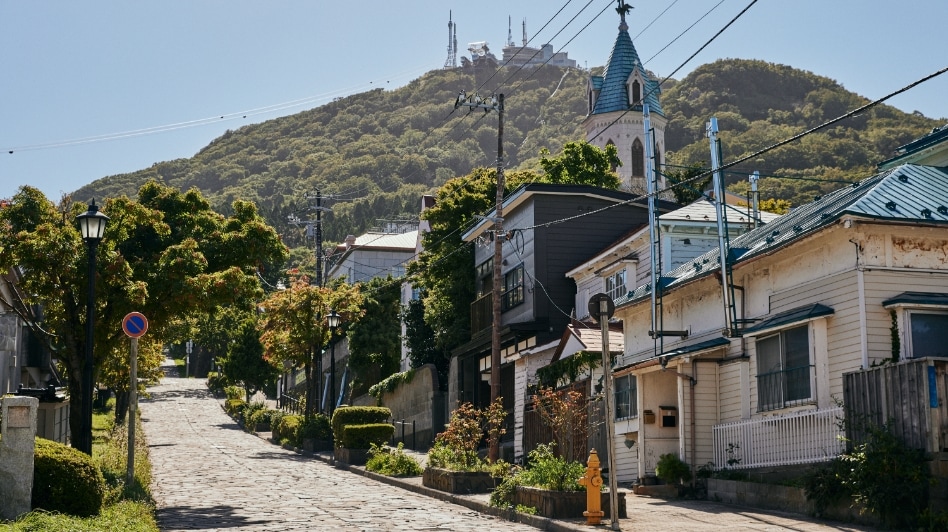 この坂は、下から見る景色が圧倒的におすすめ。途中、ロープウェイを望みながら歩くことができるのが最大の魅力です。他の坂に比べて細く短く、レトロな小道といった可愛らしさを備えています。アイヌ語で「おじいさんのように腰を屈めて歩くくらいの傾斜」という意味から名付けられているそう。