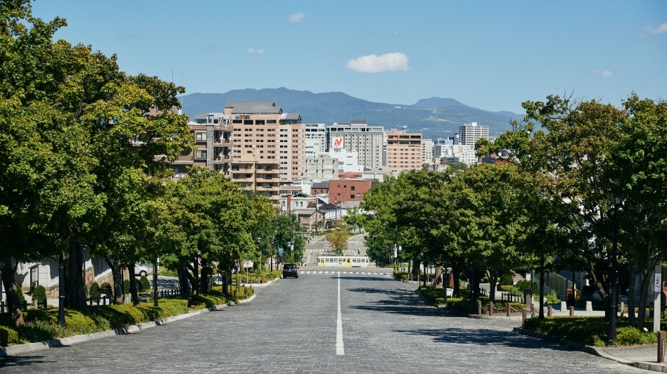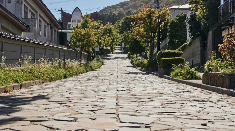 日本の道百選に選ばれているこの坂は、抜けた先に見える教会の景色と石畳の趣が異国情緒に溢れていて素敵です。道が直線的ではなくウェーブしているため、車で通るとアトラクションみたいな楽しさがあるかもしれません。