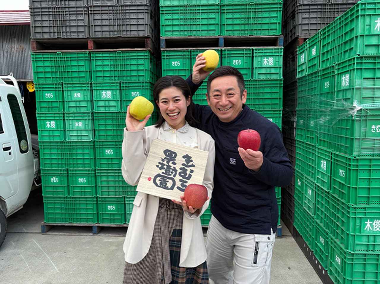 木村さんとのご縁もあり、先月に行われたJR東日本×日本航空の共同ツアー「JALふるさとアンバサダーとめぐる冬の青森」では、きむら果樹園の青森りんごを使用した特製オリジナルアップルパイを提供しました。